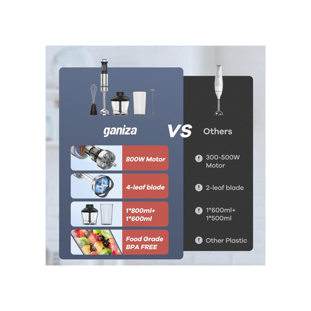 - ❤️【ADJUSTABLE SPEED & TURBO BOOST】: Ganiza immersion blender designed with 15-speed and turbo button, our electric mixer offers you convenience to choose different speeds for different purposes. The TURBO mode allows for the extra boost of power when needed.