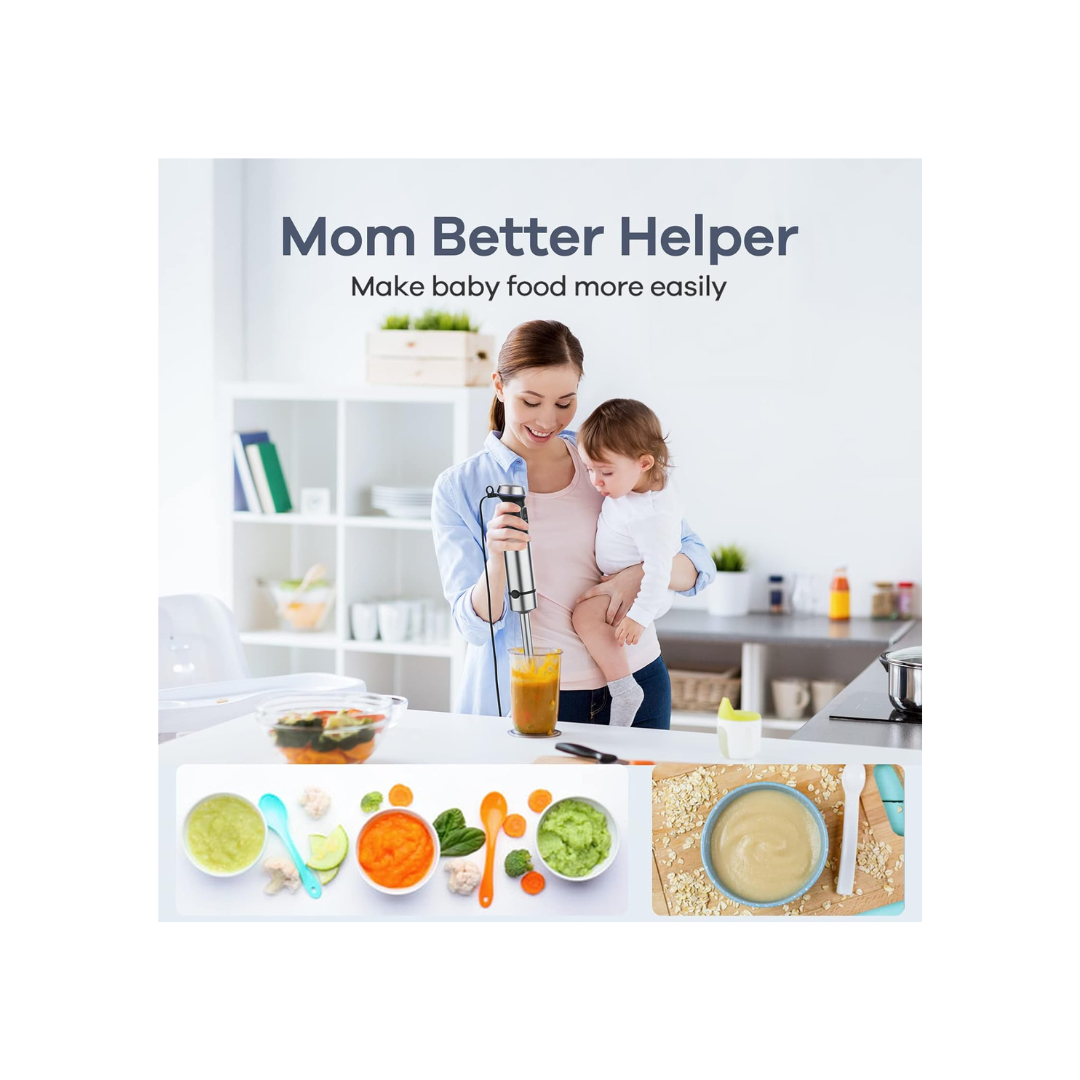- ❤️【MULTIPLE ACCESSORIES YOU NEED】5-in-1 stick blender for versatile capabilities. Includes immersion hand blender, 800ml Mixing Beaker, 600ml Chopper, Whisk Attachment, and Milk Frother. The snap-on/off detachable attachments are designed to make it easier to operate when multi-tasking in the kitchen.