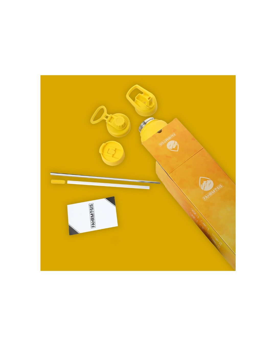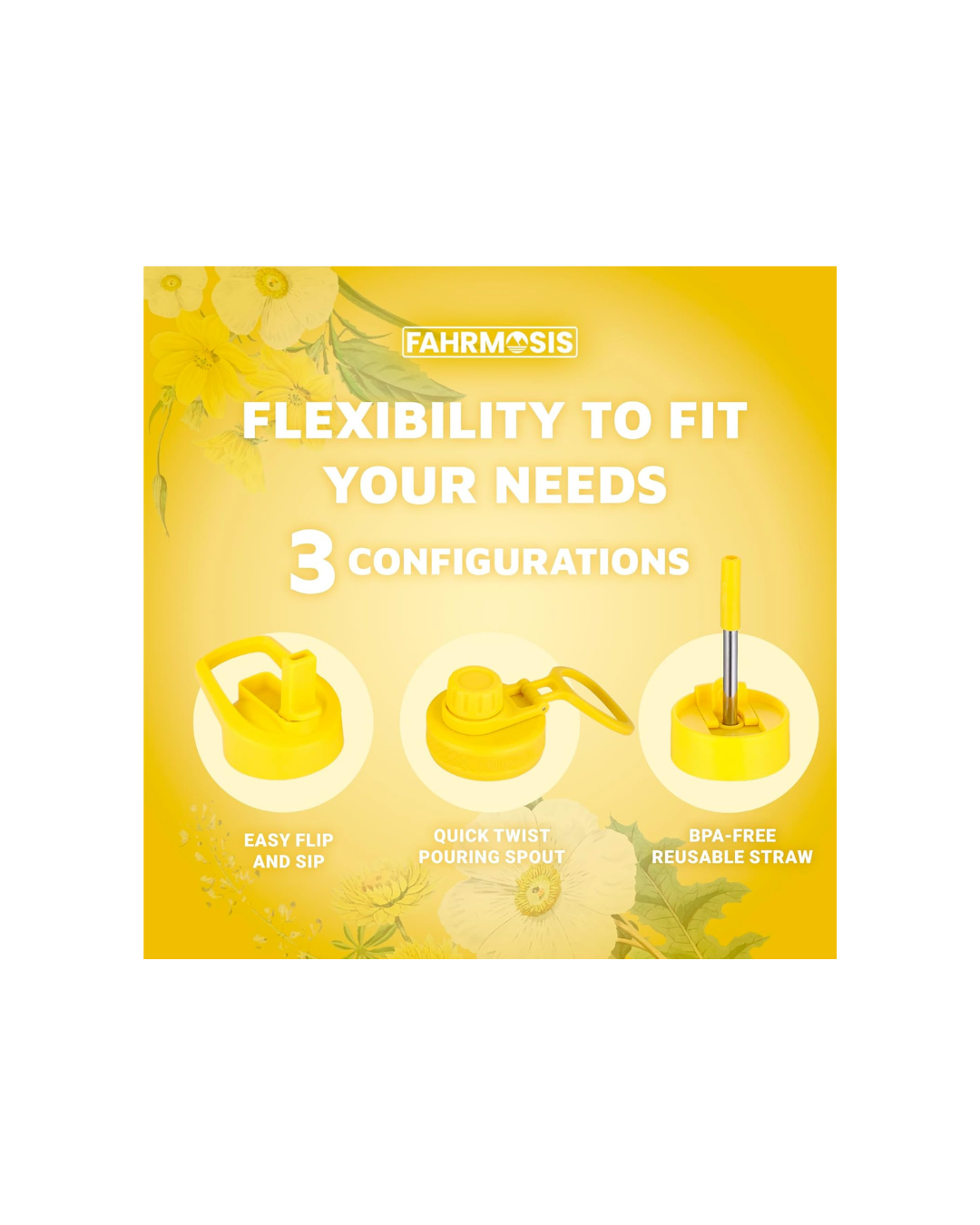 FAHRMOSIS 40 OZ Water Bottle with Straw | Insulated Water Bottle Water Jug Includes 3 Lids Water Bottles | Stainless Steel Water Bottle for Men & Women - Yellow