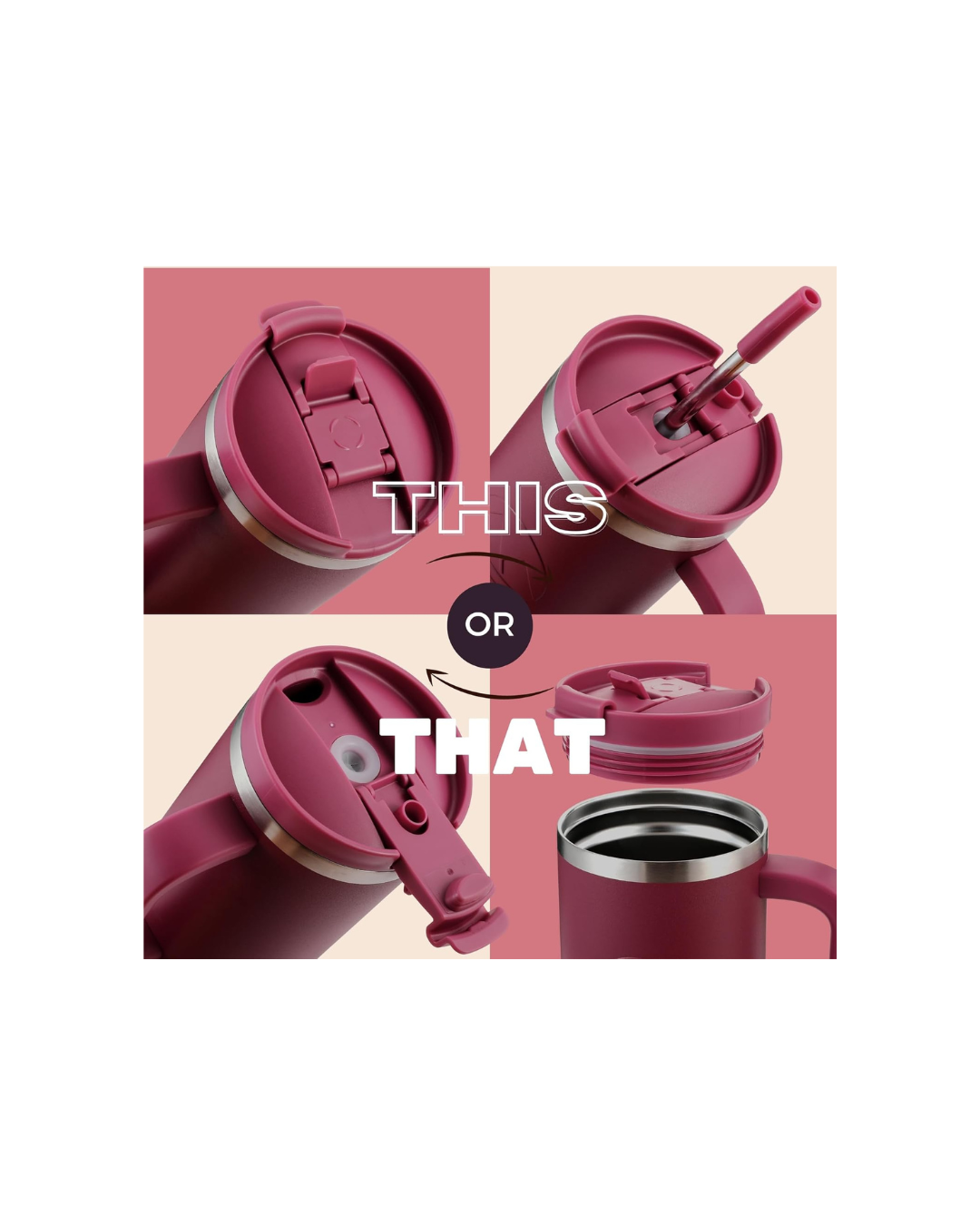 Tumbler with Handle and Straw | Leakproof Tumbler with Straw Insulated Travel Mug Fits Cupholders | Insulated Cup 40 oz Water Bottle with Straw Stainless Steel Tumbler - Red