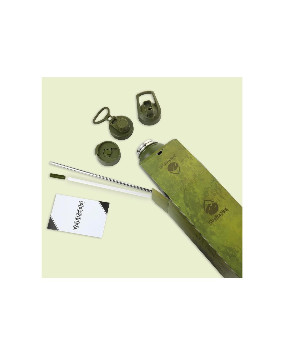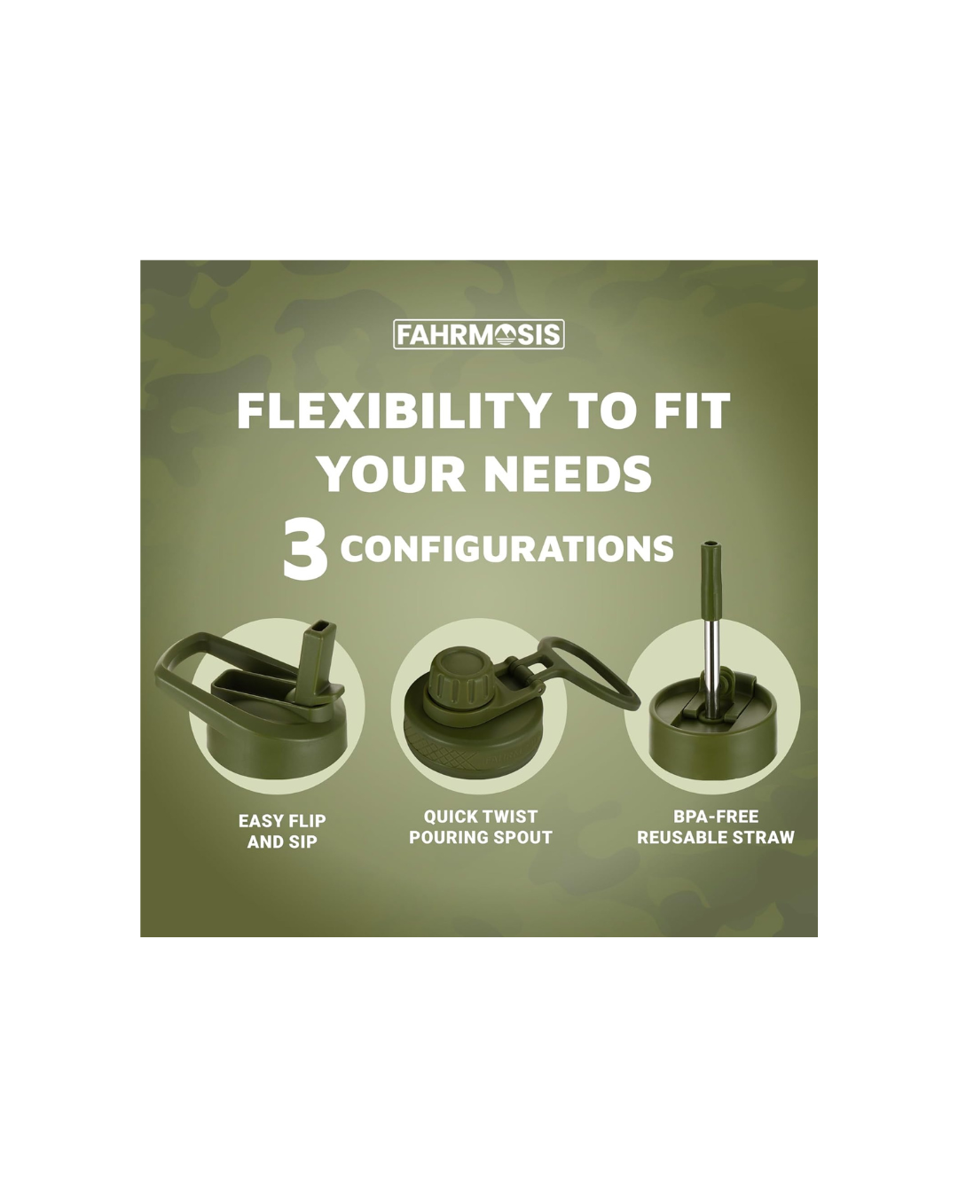FAHRMOSIS 40 OZ Water Bottle with Straw | Insulated Water Bottle Water Jug Includes 3 Lids Water Bottles | Stainless Steel Water Bottle for Men & Women - Army Green