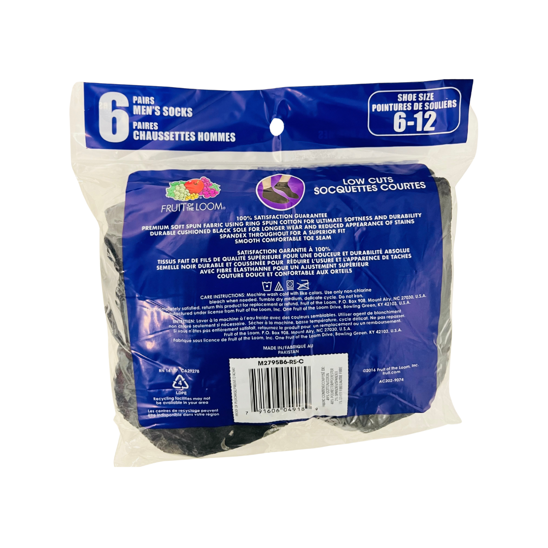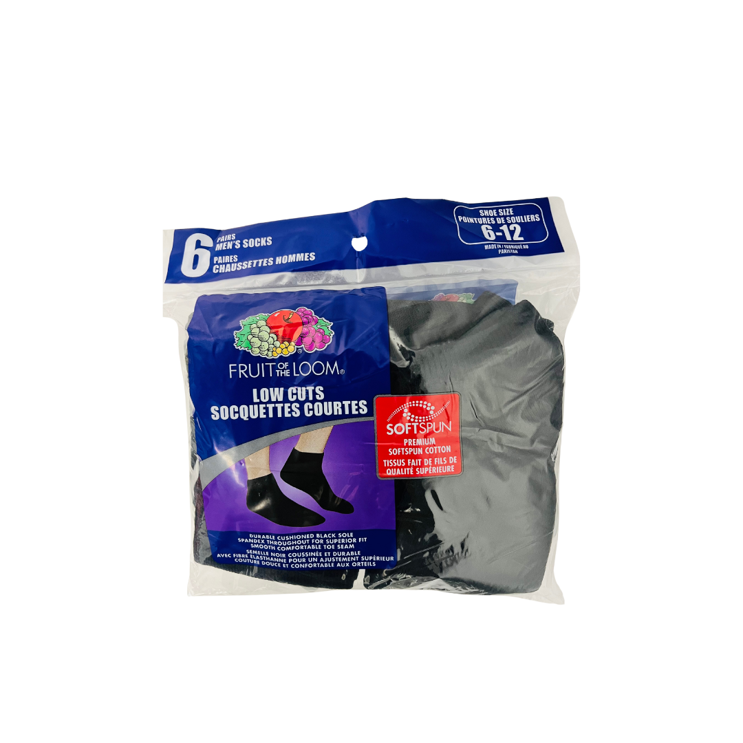 FRUIT OF THE LOOM 6 PAIRS LOW CUT SOCKS FOR MEN BLACK